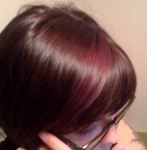 I also got my own hair colored while I was at work today, and it looks badass (and that I have a picture of, although not a very high quality one – it’s purple folks)! So although I called a draw with the actual hair color, I call today overall a win!